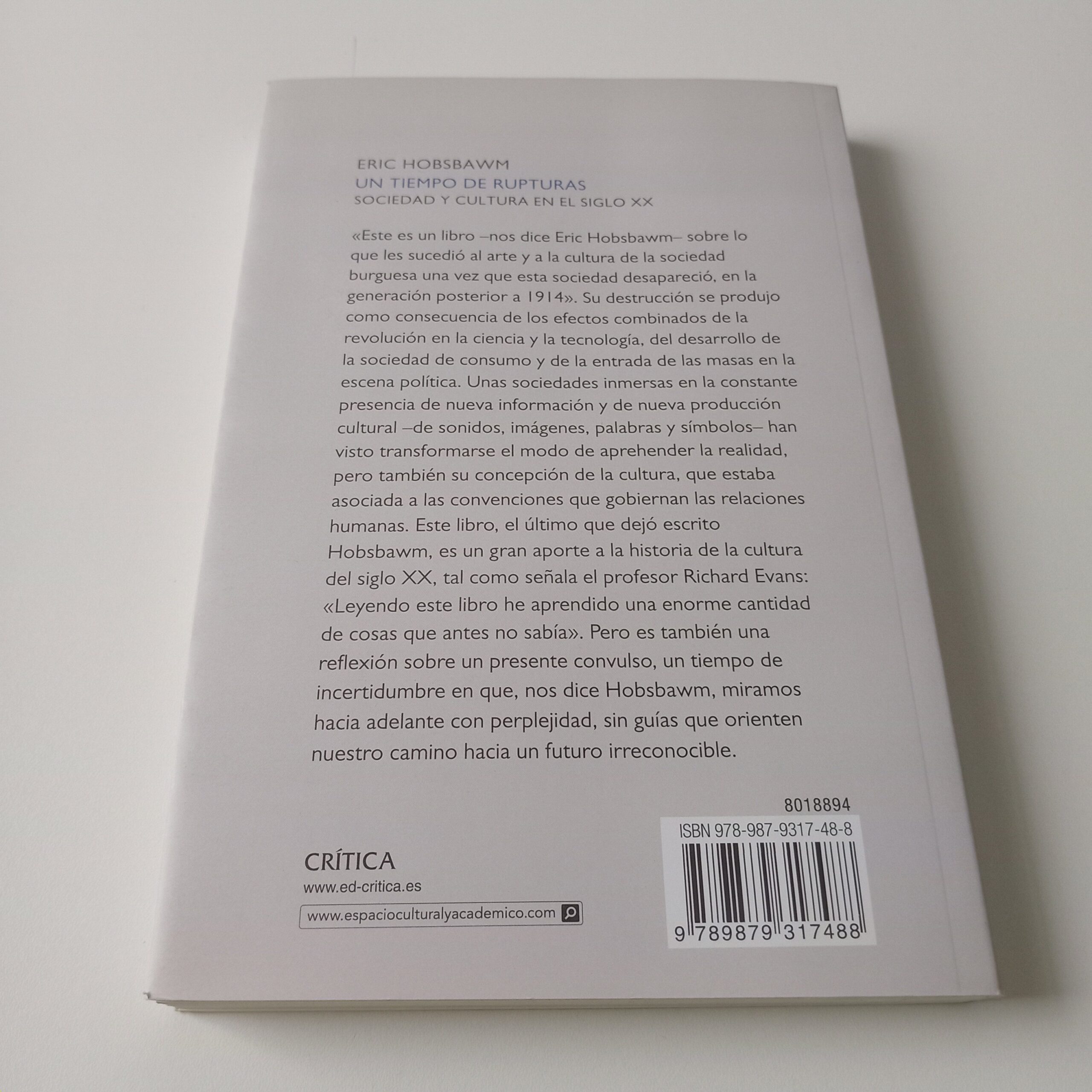 “Este es un libro –nos dice Eric Hobsbawm- sobre lo que les sucedió al arte y a la cultura de la sociedad burguesa una vez esta sociedad desapareció, en la generación posterior a 1914”. Su destrucción se produjo como consecuencia de los efectos combinados de la revolución en la ciencia y la tecnología, del desarrollo de la sociedad de consumo y de la entrada de las masas en la escena política. Unas sociedades inmersas en la constante presencia de nueva información y producción cultural han visto transformarse el modo de aprehender la realidad, pero también su concepción de la cultura, que estaba asociada a las convenciones que gobiernan las relaciones humanas. Este libro, el último que dejó escrito Hobsbawm, es una gran aportación a la historia de la cultura del siglo XX, pero es también una reflexión sobre un presente convulso, un tiempo de incertidumbre en que, nos dice Hobsbawm, miramos hacia adelante con perplejidad, sin guías que orienten nuestro camino hacia un futuro irreconocible.